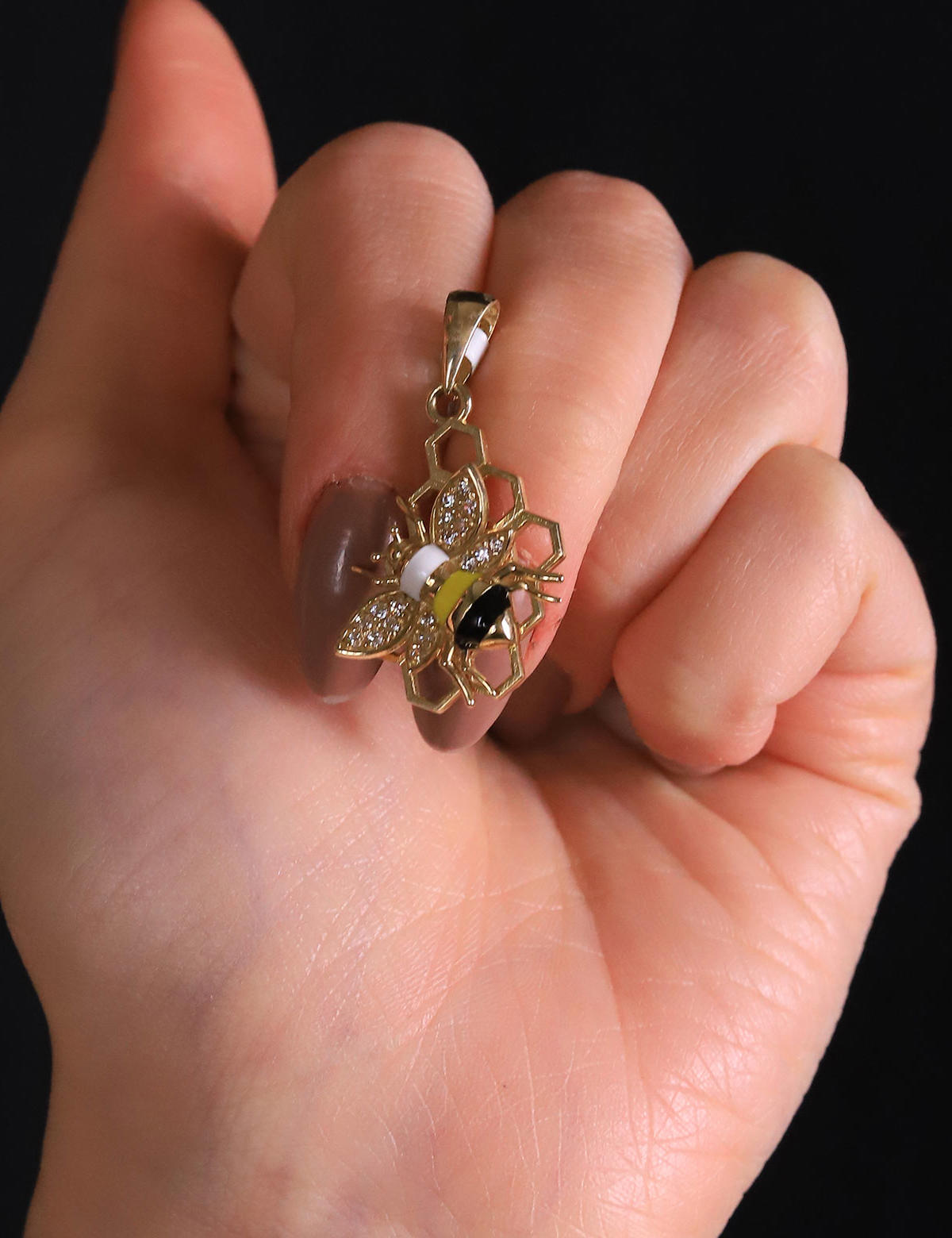14 Ayar Altın Arı Kovan Kolye Ucu ile Zarafeti Yakalayın