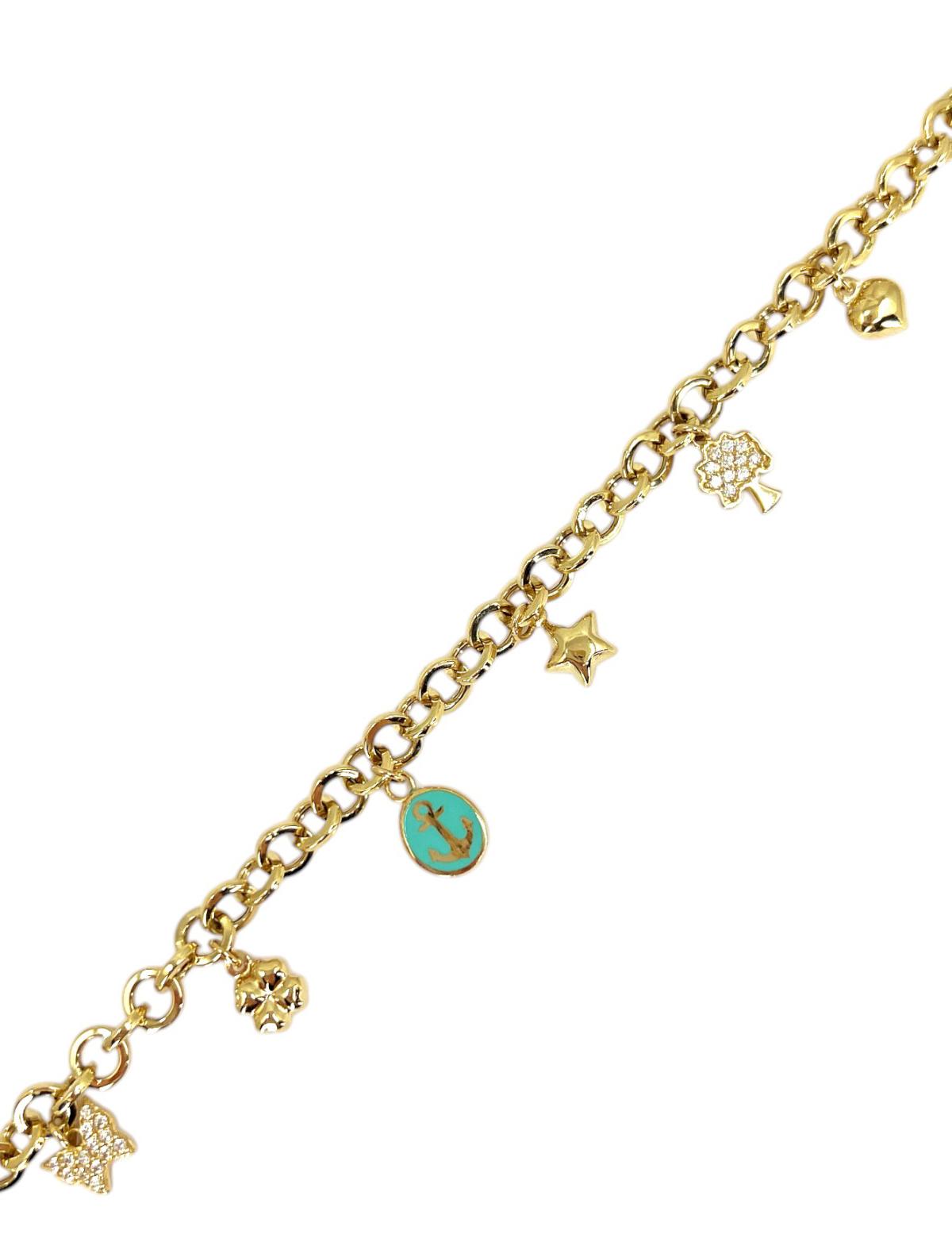 Yeşil Zarafeti: 14 Ayar Altın Figür Sallantılı Bileklik