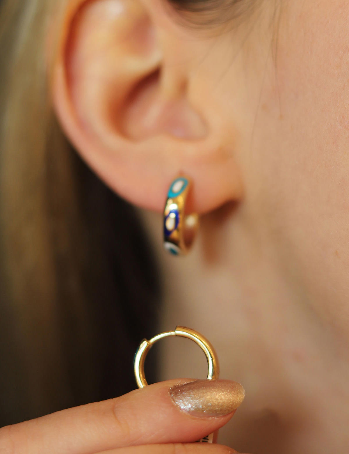 Günün her anında altın takı şıklığını yaşamak isteyen kadınlar için, 14 ayar altının eşsiz dokusuyla hazırlanan bu halka küpe, sofistike ve minimal bir stil sunuyor. Yeşil renkteki mine detayı, klasik tasarımınıza modern bir dokunuş katarak sizi farklı kılar.