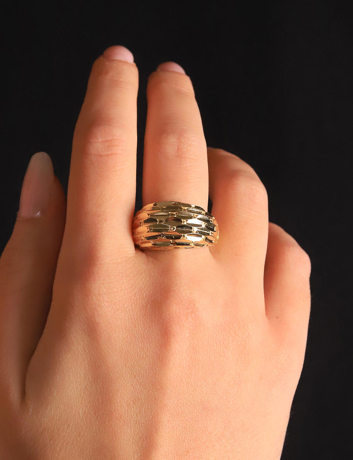 Gülenler Altın güvencesiyle satışa sunulan bu eşsiz 14 ayar altın yüzük, taşsız sade tasarımıyla her yaştan kadının zevkine hitap ediyor. Parlak ve zarif yüzeyi ile dikkat çeken bu ürün, İtalyan tasarımının minimalizmini yansıtıyor.