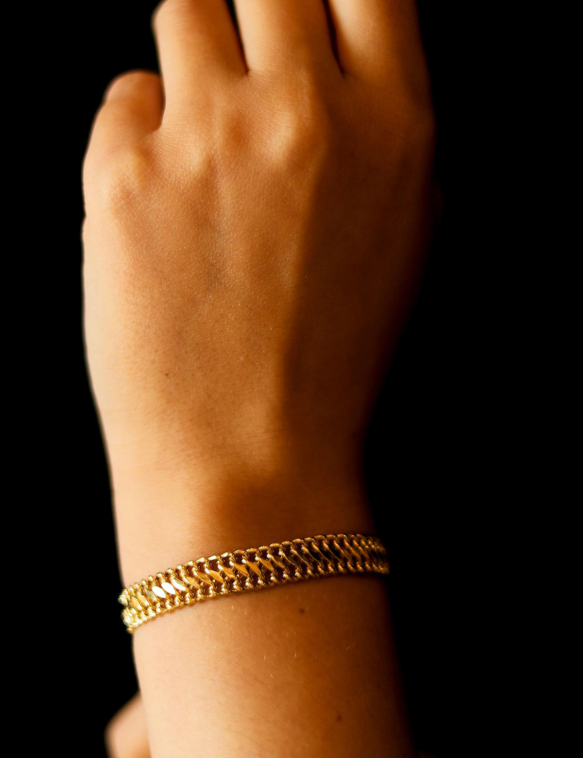 Kalın Altın Bileklik kategorisinde yer alan bu özel tasarım, genç kadınlara ve kızlara hitap eden zarif bir seçenektir. Gülenler Altın güvencesiyle sunulan bu bileklik, şık görünümüyle dikkat çekiyor.