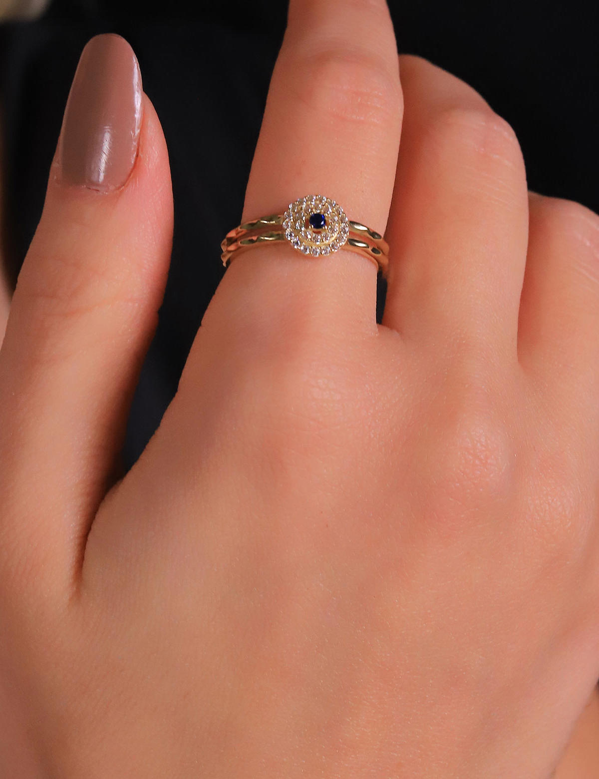 Parlak Güzelliğiyle 14 Ayar Altın Mavi Baget Yüzük
