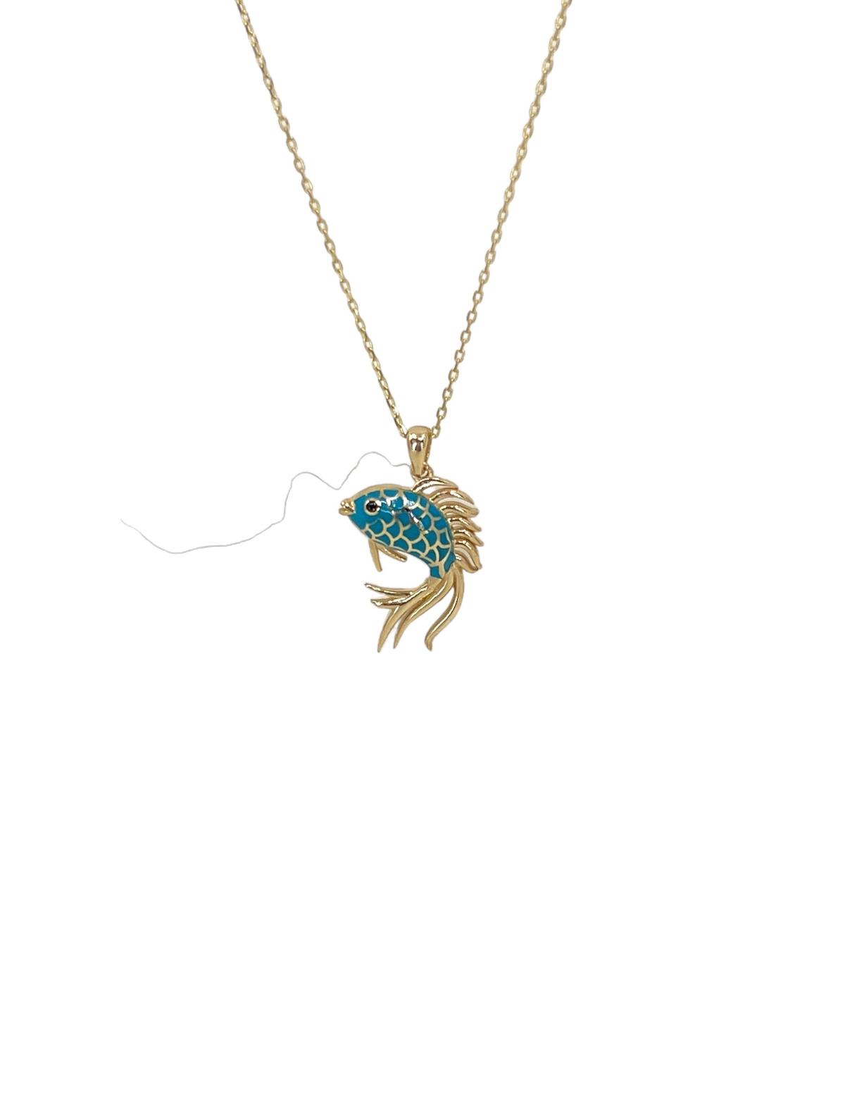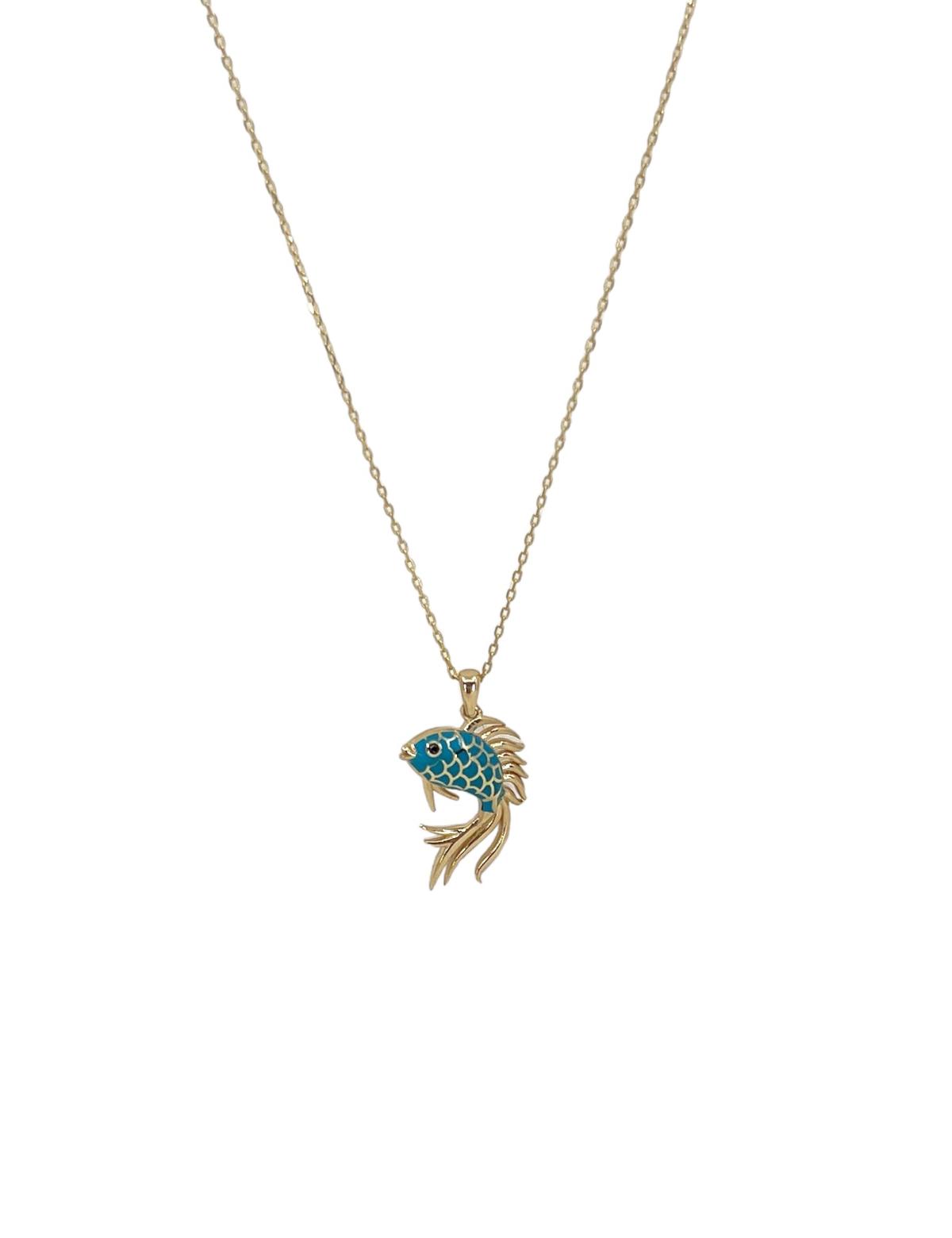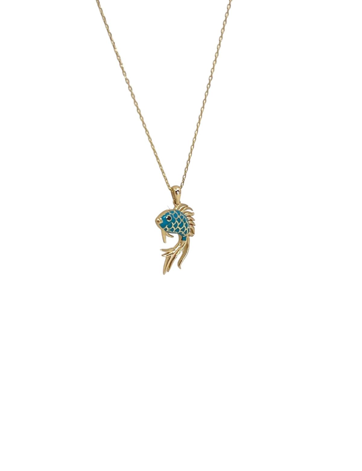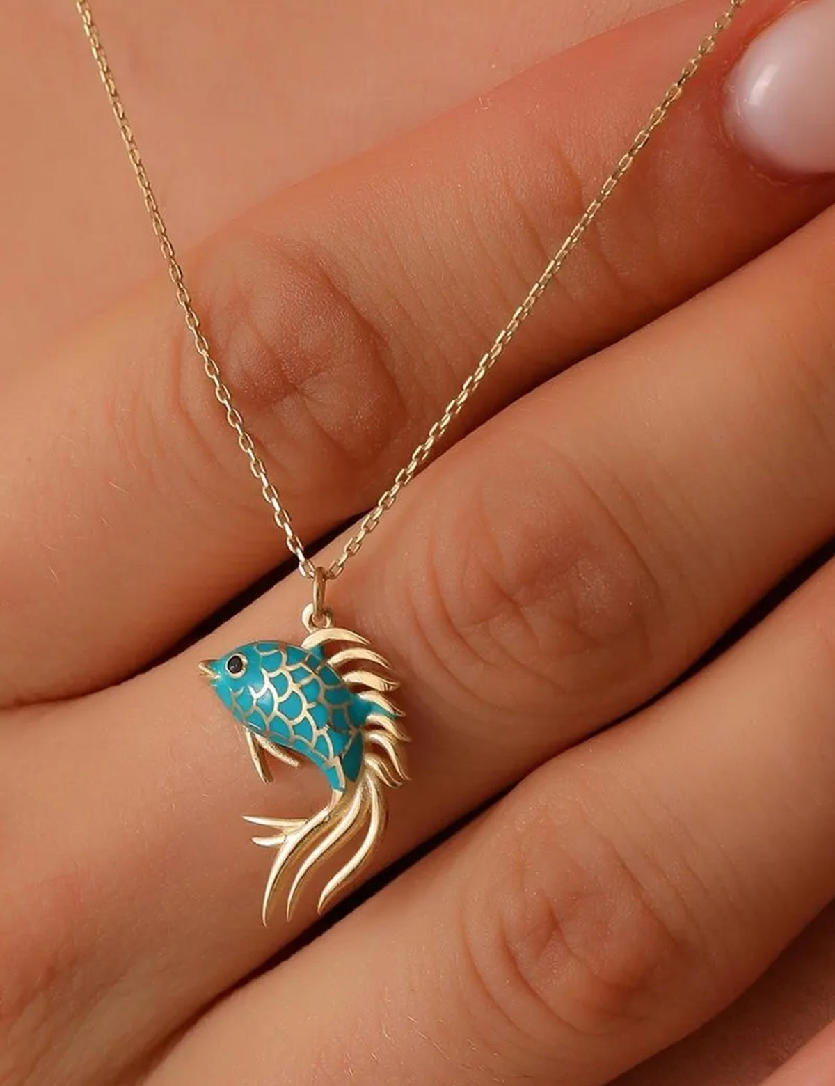 14 Ayar Altın Mavi Mineli Balık Kolye: Zarafetin Yeni Tanımı
