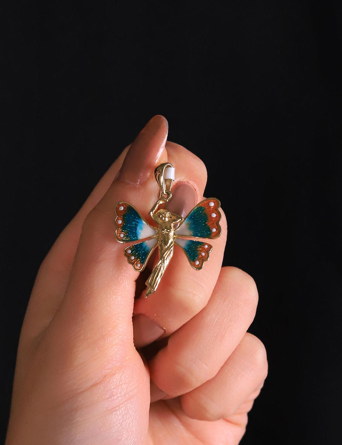 Görenleri kendine hayran bırakan bu kolye ucu, yeşil rengin sakinleştirici etkisiyle birleşmiş 14 ayar altından üretilmiştir. Mine işçiliğiyle taşsız ama parlak bir duruş sergileyen kelebek motif, günlük kombinlerinize minimal şıklık kazandıracak.