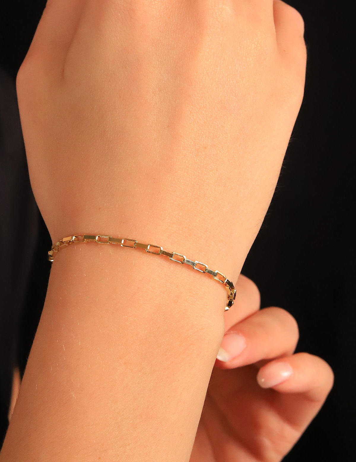 Göz alıcı altın takı tutkunları için özel olarak tasarlanan bu bileklik, klasik ve modern tarzları zarif bir şekilde buluşturuyor. Minimal tasarım seven kadınlar ve genç kızlar için ideal bir tercih olan bu altın bileklik, her anınıza eşlik edecek şıklıkta.
