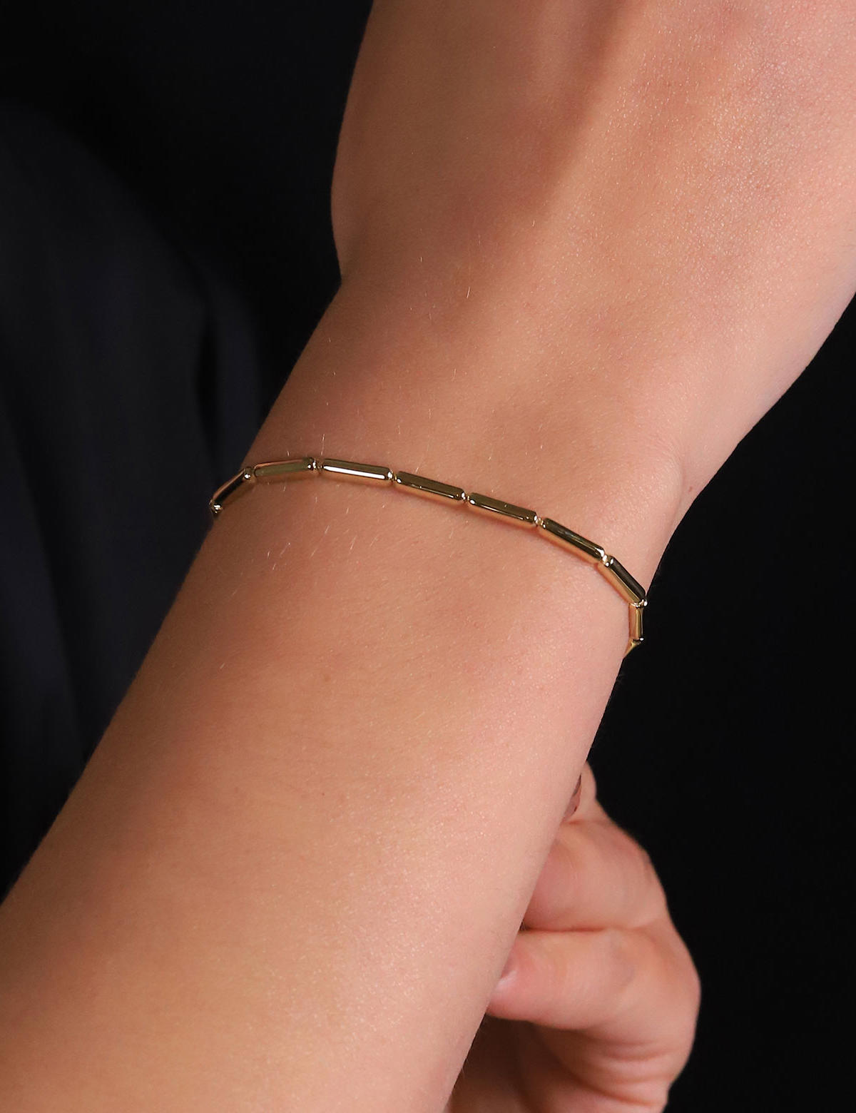 Bu bilekliğin sade fakat etkileyici tasarımı, onu hem klasik hem de modern kıyafetlerinizle kombinleyebilmenizi sağlar. Günlük yaşamda veya özel davetlerde kullanabileceğiniz altın takılar, her zaman stilinizi ön plana çıkarır.