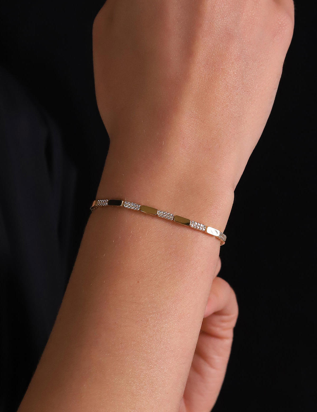 Klasik tasarım unsurları ile modern dokunuşların birleştiği bu bileklik, stil sahibi kadınlar için mükemmel bir tercih. Zarif sıralı taş dizaynı sayesinde minimal detaylarla süslenmiş görünümü, zamansız bir şıklık katar. Genç yaş grubuna hitap eden bu bileklik, stilinizi en iyi şekilde tamamlar.