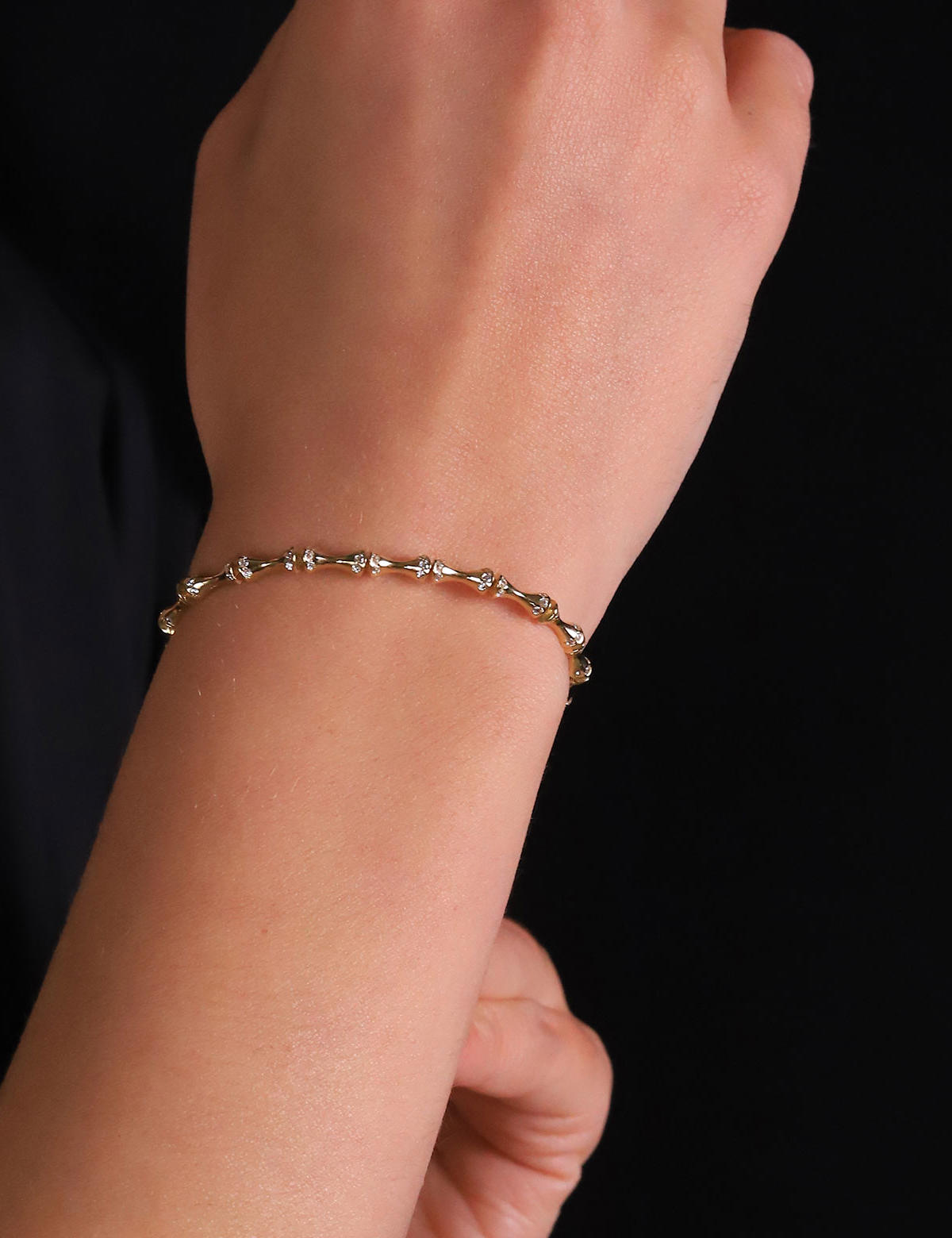 Modern çizgileri klasik dokunuşla harmanlayan bu bileklik, her ortamda fark yaratmak isteyen kadınlar için ideal bir tercih. Altın takı koleksiyonunuzun nadide parçası olacak bu tasarım, hem günlük kullanımda hem de özel davetlerde tarzınıza sofistike bir hava katacaktır.