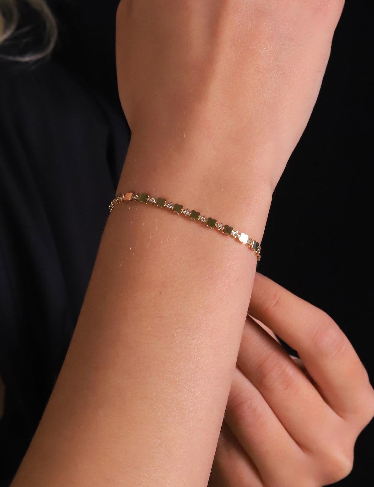 Yeşilin Zarafetini Taşıyan: 14 Ayar Altın Yonca Sıralı Bileklik