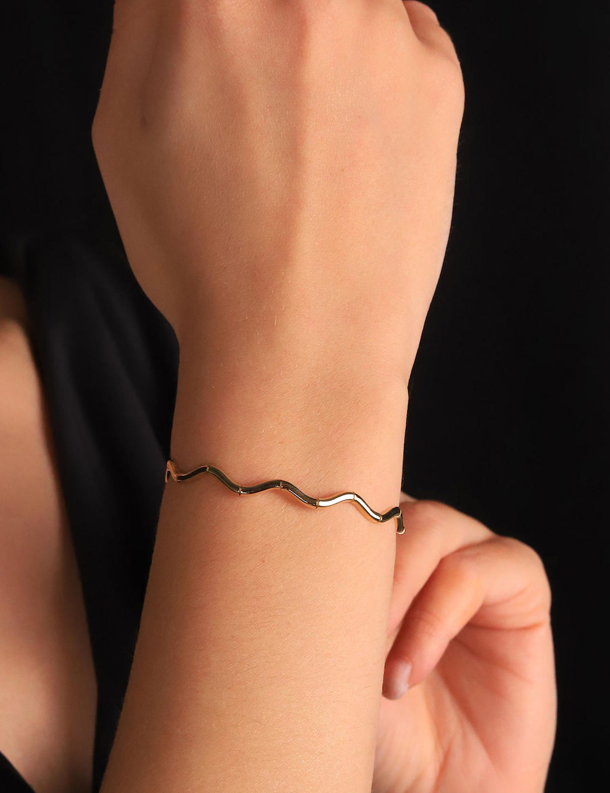 14 Ayar Altının Minimal Zarafeti: Zigzag Düz Bileklik
