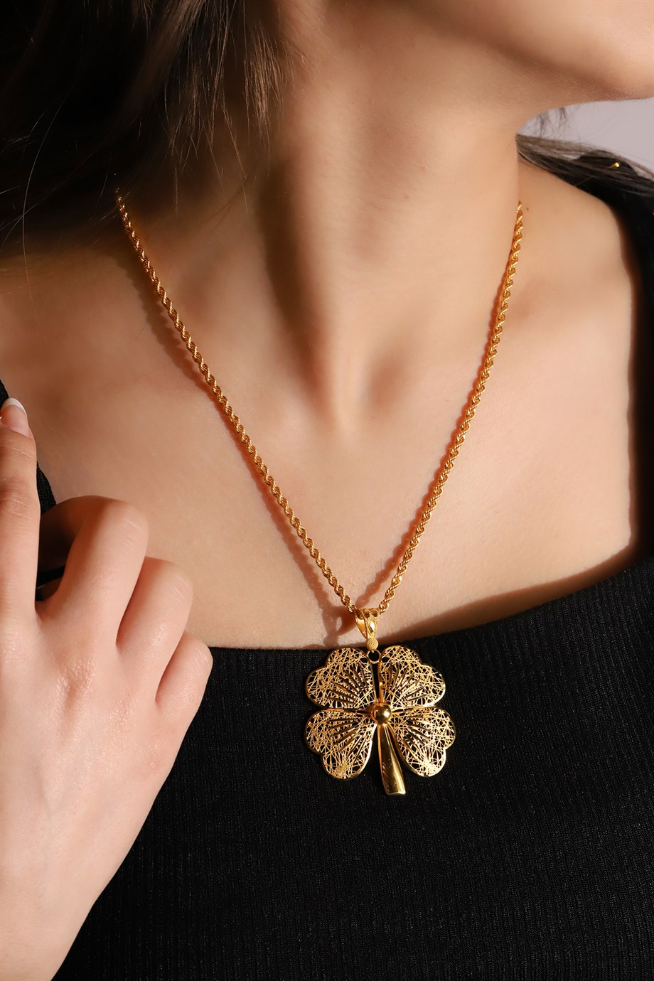 Zarif ve Anlamlı: 22 Ayar Altın Hint İşi Yonca Kolye Ucu