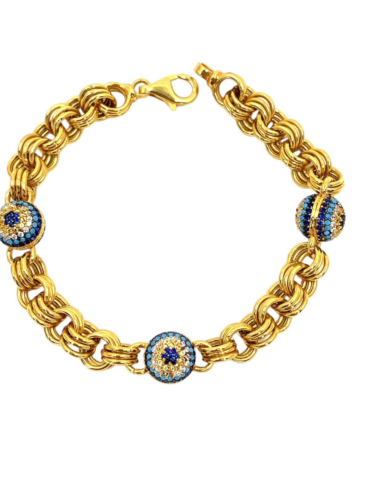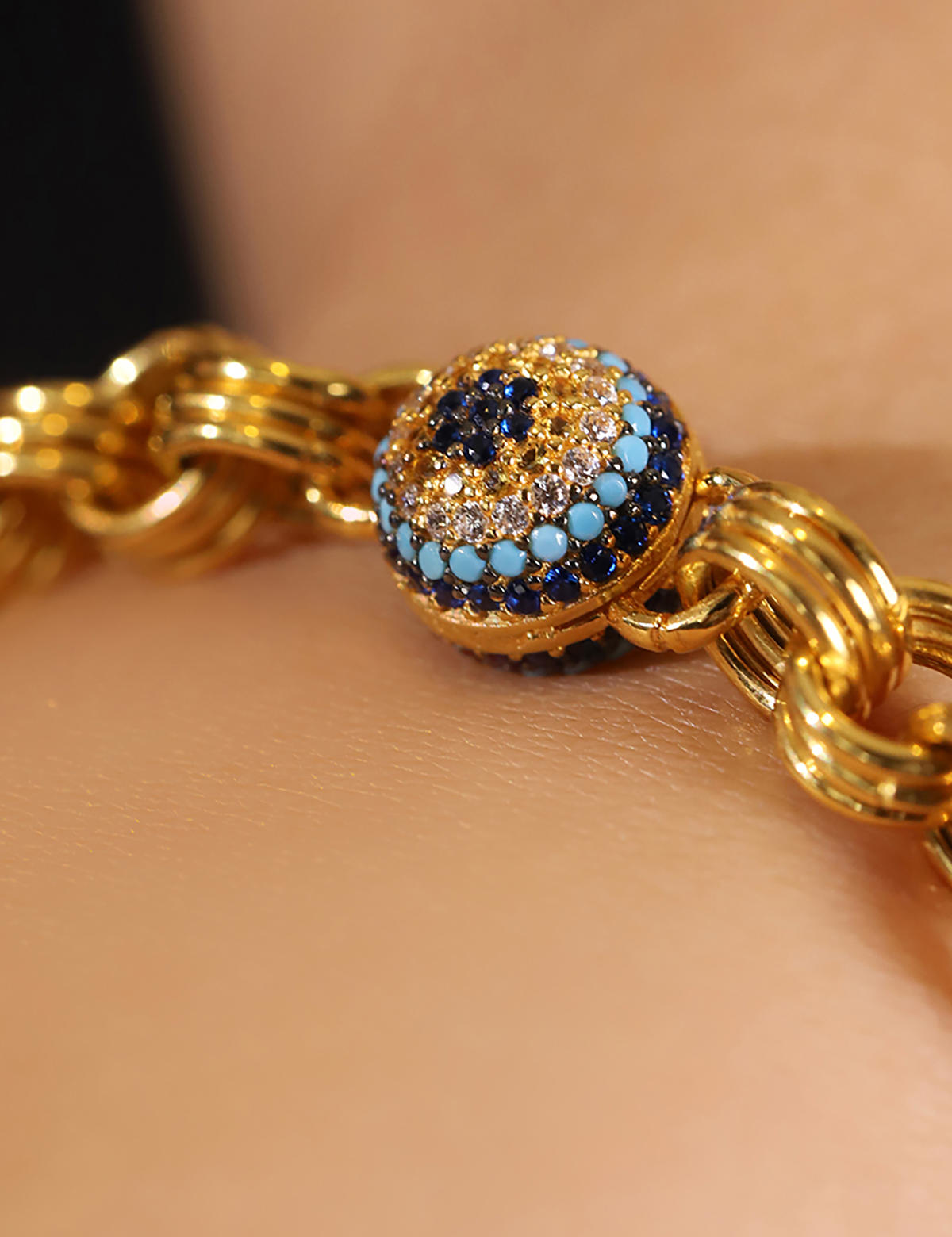 Hayatınıza nazardan korunma ve şıklık katmak ister misiniz? Taşlı altın bileklik kategorisinde yer alan 22 ayar altından üretilmiş bu zarif bileklik, hem günlük yaşamınızda hem de özel günlerde eşsiz bir tamamlayıcı olacak.