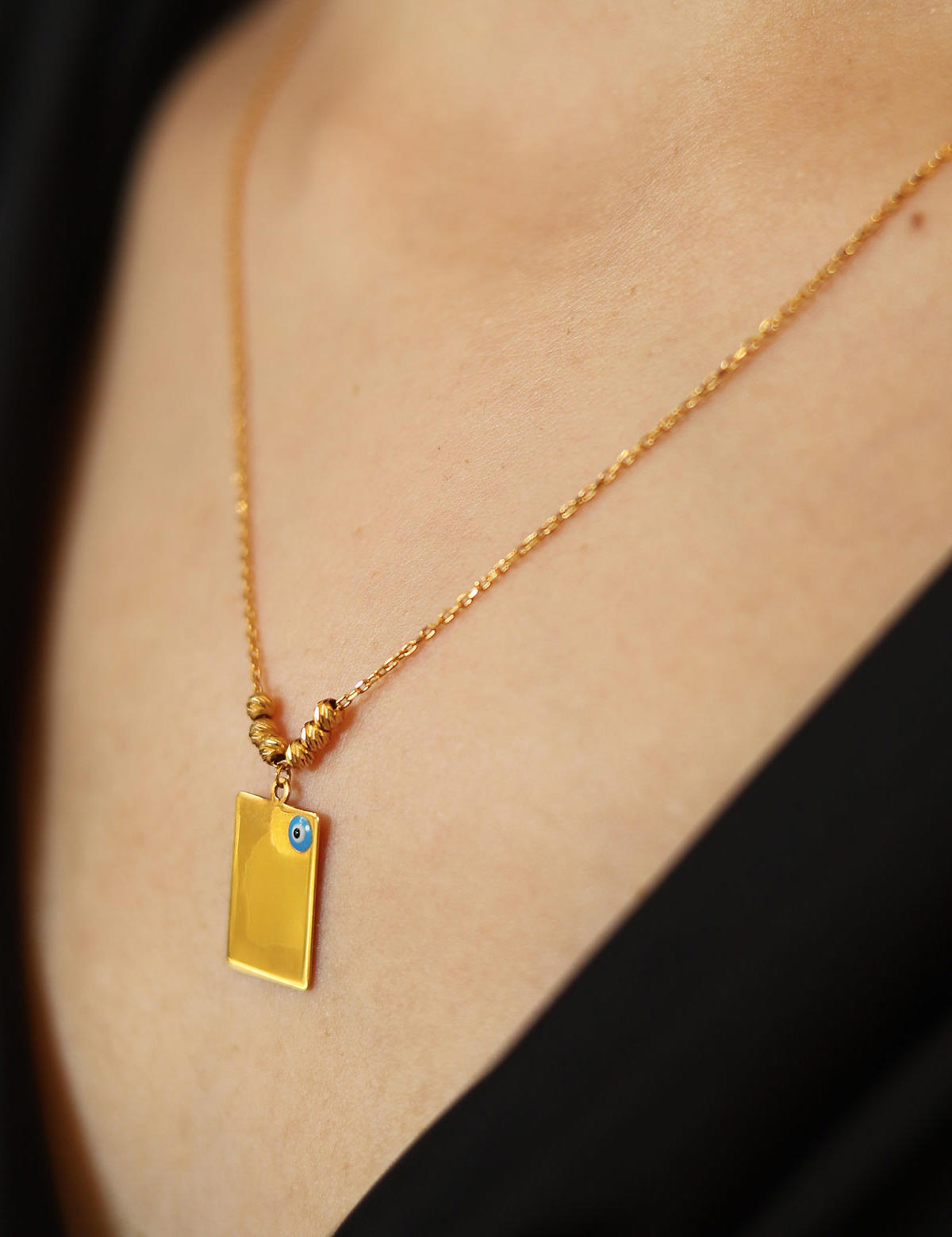 22 Ayar Altın Nazarlı Plaka Kolye ile Zarif Şıklık