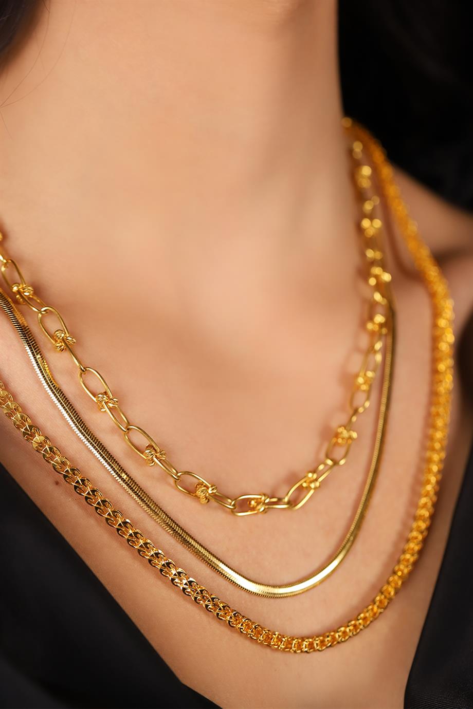 Sarı rengin sıcaklığıyla ışıldayan bu altın zincir, taşsız tasarımının getirdiği sadelikle göz alıcı bir görünüm sağlıyor. Günlük kullanımda veya özel davetlerde, her türlü kombininizi tamamlayarak stilinize sofistike bir dokunuş ekliyor.
